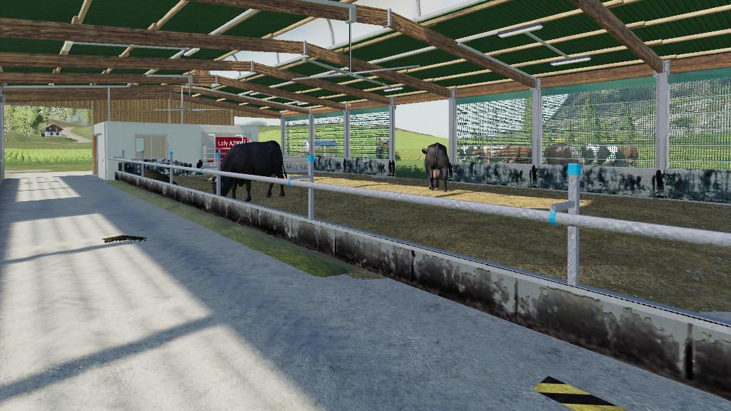 This cowshed with the dimensions of 40mx20m and an attached pasture, also with the dimensions of 40mx20m, can accommodate up to 200 cows. Credits: moechtegernbauer |