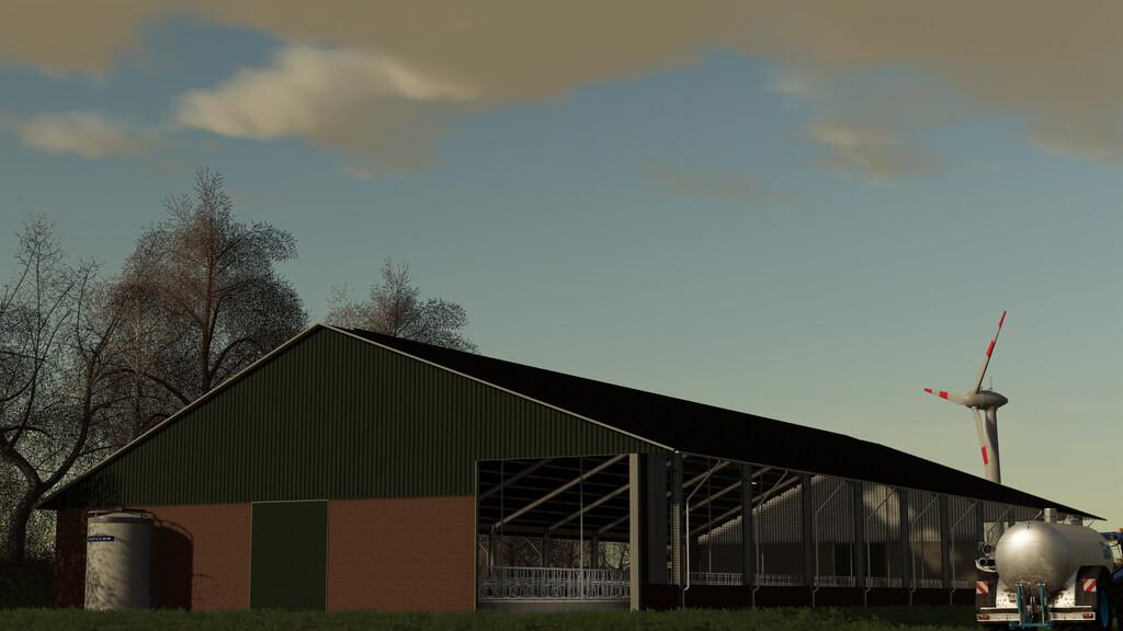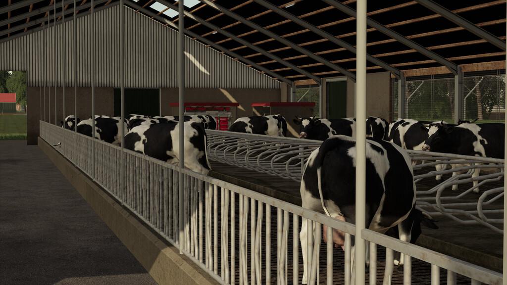 Mod COWSHED 3+0 V1.1.0.0 for Farming Simulator 2019 Free-stall barn for 80 cows. Credits: 20mmNormandy |