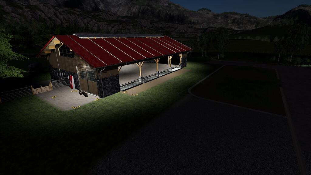 Mod features - Construction price: 400,000 euros; - Daily maintenance € 500; - Holds up to 444 cows; - There is a pasture, lighting and everything you need.