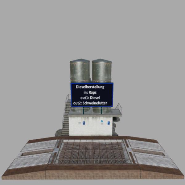 Canola becomes 10% diesel and 90% pig food. Diesel production can be found under the placed objects -> bunkers. The mod was tested in Singelplayer mode on my Frohnheim card and on Ravenport and without errors. The script is a new development for FS 19. Credits: Farmer_Schubi |