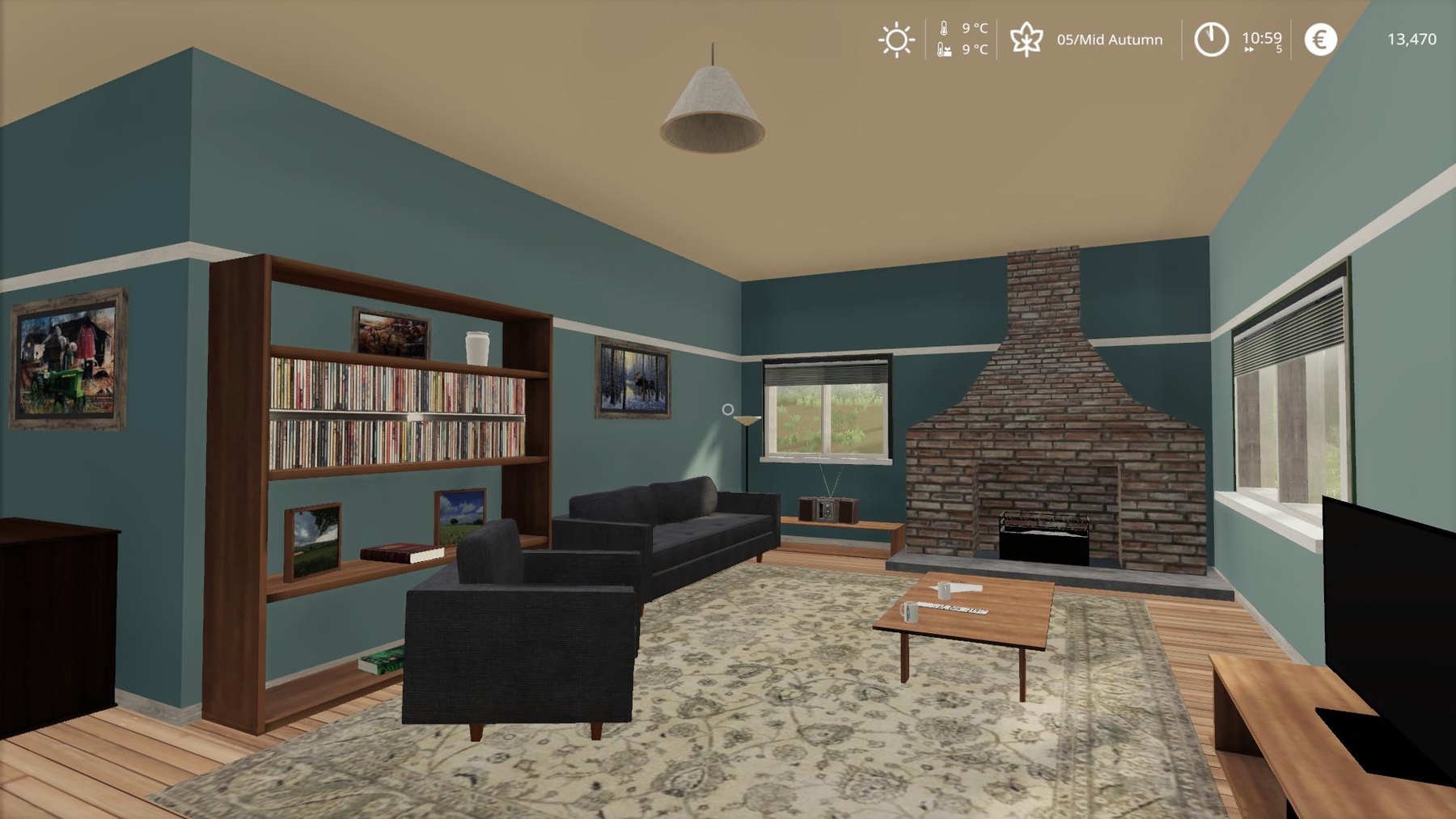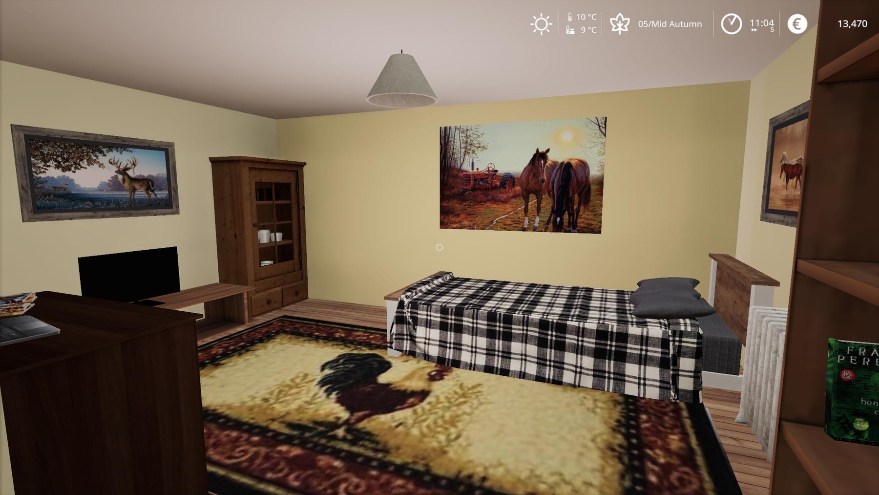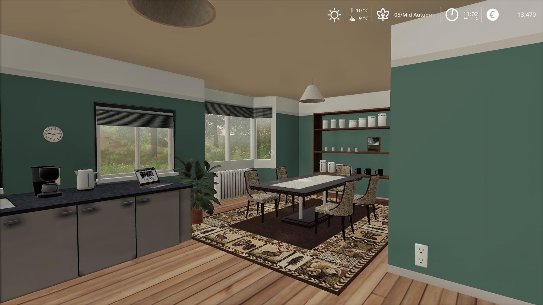 Mod Farmhouse v1.7.1.0 for Farming Simulator 2019 Placed house. The house has 2 bedrooms, a kitchen, a living room, a laundry room, a storage room, a hall on 2 floors and a garage for 2 cars. -The sleep trigger is in the bedroom. Cost: € 180,000.