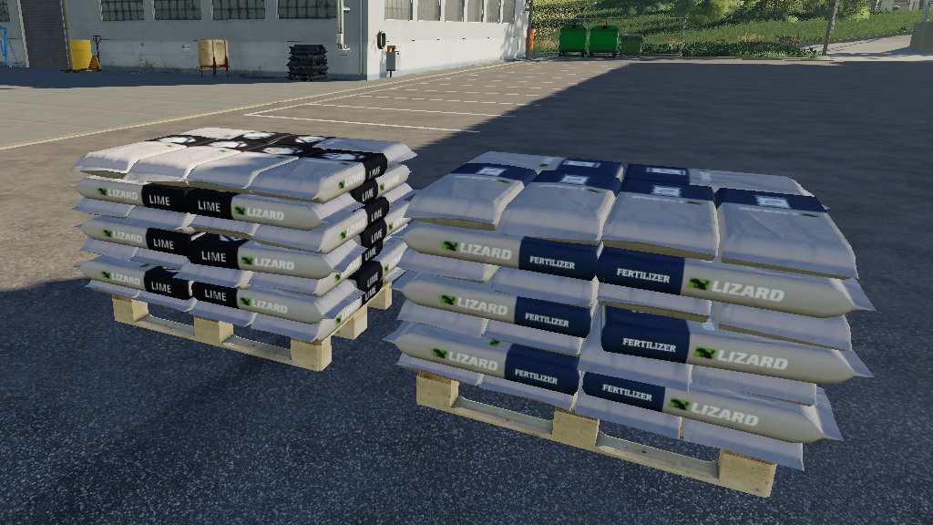 Fertilizer And Lime Pallet v1.0.0.0 for Farming Simulator 2019 Pallets for fertilizer and lime, with a capacity of 2100 liters. Bags disappear when used. The price of fertilizer is 4043 €, the price of lime is 460 €. Credits: Robymel81 Modding |
