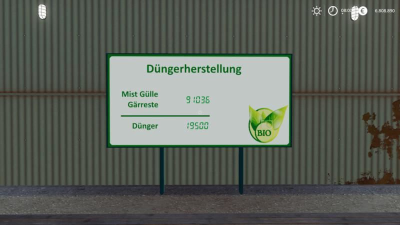 This is a placeable fertilizer production! Version 1.0.5.0 Manure, manure or digestate becomes manure. Fertilizer production can be found under placeable objects -> silos. The mod has been tested in Singelplayer mode on my map "Frohnheim" and on "Ravenport" and as far as free of errors. The script is a new development for the LS19. Credits: Farmer_Schubi |