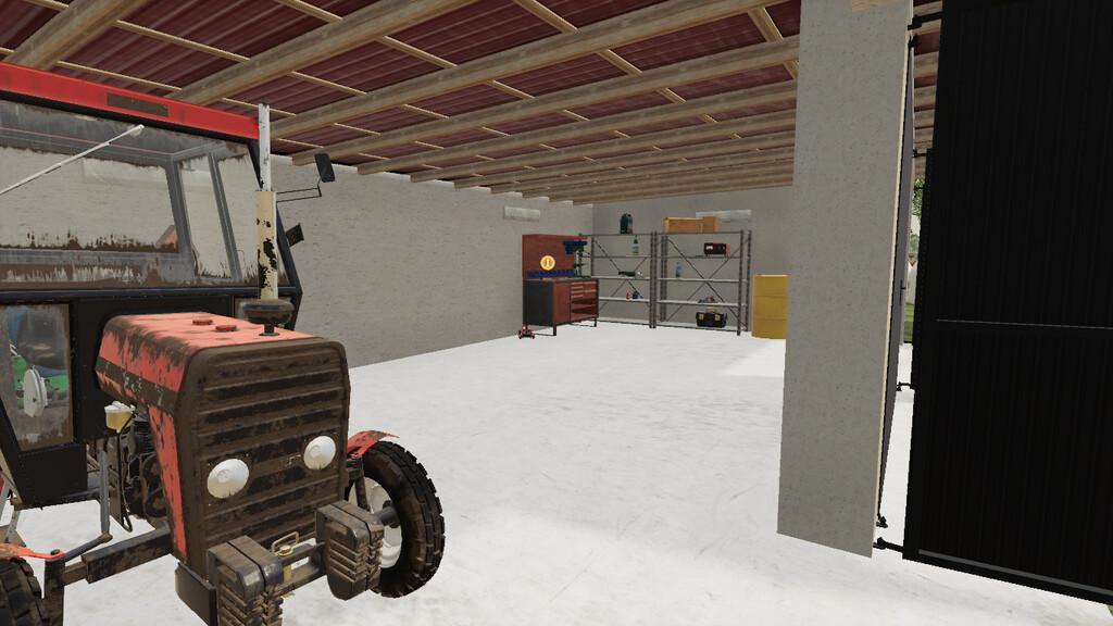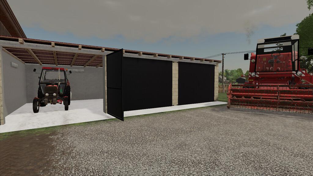Mod GARAGE FOR MACHINES 13.26X7 V1.0.0.0 for Farming Simulator 2019 Garage with 3 pairs of entrance gates. The garage serves as a workshop. Credits: Wojtas_ZACHO |