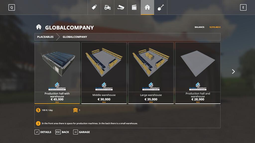 МOD GLOBALCOMPANY - PRODUCTIONS V1.0.0.0 FOR FARMING SIMULATOR 2019