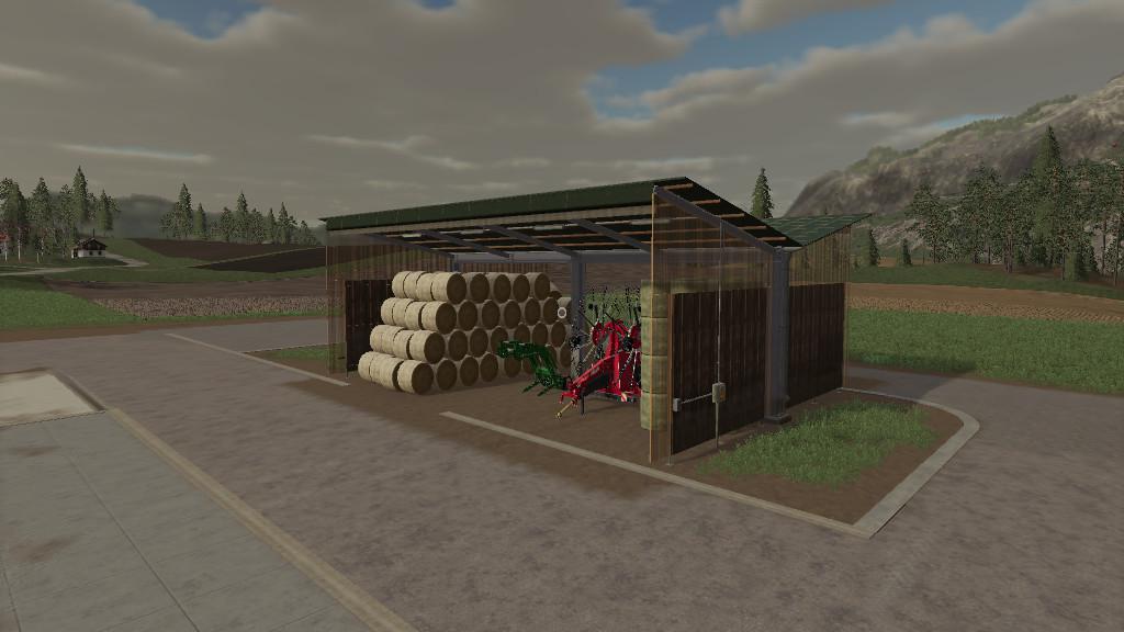 Мod HayWarehouse v1.0.0.0 for Farming Simulator 2019 This hay warehouse is used to store hay and straw, which ensures constant air quality and constant air circulation. The walls are made of open wooden battens and stand on stilts; the front and back are made of a net to protect against wind, which can be opened if necessary. Credits: moechtegernbauer |