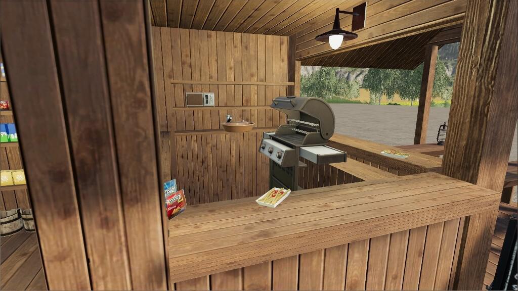 This imbiss booth is very useful, if you built a holiday village. The holiday guests can not only buy fast food but also every day holiday products, partly from your farm products.