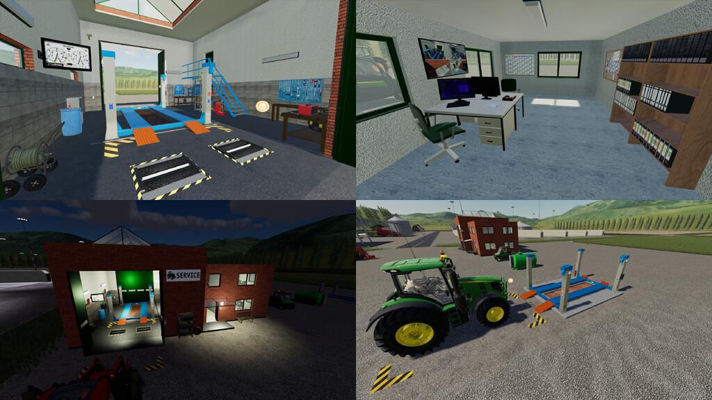 MOD LARGE FARM WORKSHOP V1.0.0.0 FOR FARMING SIMULATOR 2019 A large collective farm workshop for the maintenance and repair of cars. The lift can also be bought and placed individually. Chest: 18m x 14m (Rise: 4.25m x 6.90m, Height 2.70m) Slots (console): 38 (lift: 5) Credits: CaveModding |