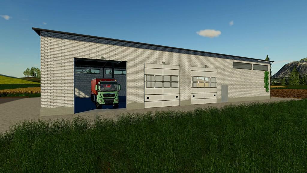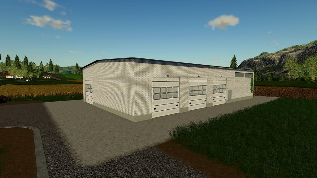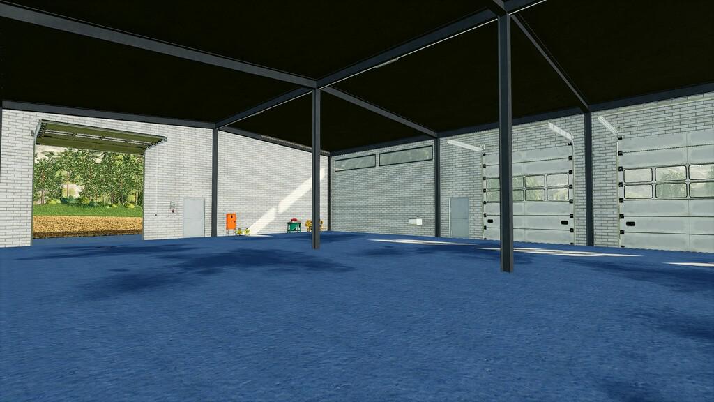 Mod Large Machine Hall v1.0.0.0 for Farming Simulator 2019 It is a large machine room with 5 gates and animated lighting. Credits: Neroxc |