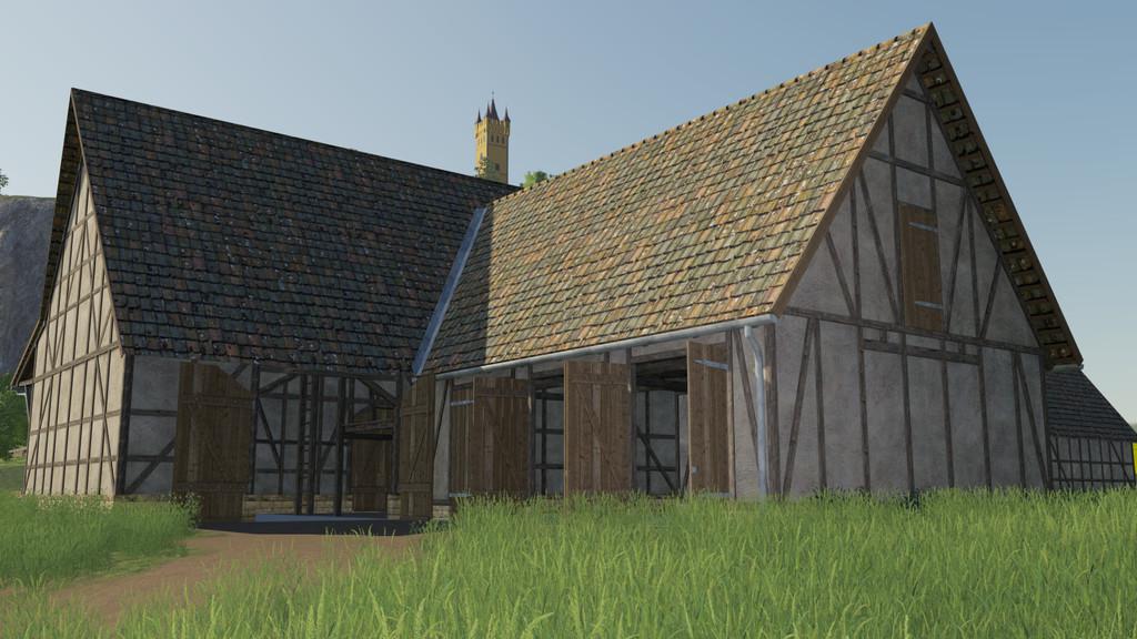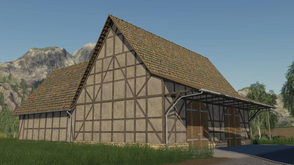 MOD LARGE TIMBERFRAME BARN V1.0.0.0 FOR FARMING SIMULATOR 2019 A classic timberframe barn with attic. There are two versions of this barn, one with and one without addition. The barn has a seasons-mask and thus is seasons-ready. Credits: modelleicher (LS-Modcompany) |