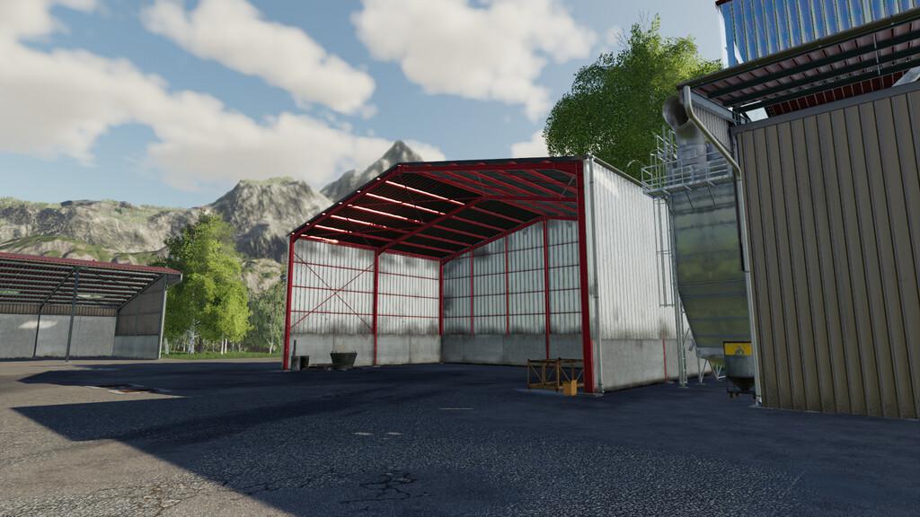 Mod LEGRAND STROHSCHUPPEN V1.0.0.0 for Farming Simulator 2019 Metal shed for storing straw or agricultural equipment. It offers a covered area of 210 m². In addition, its base is concrete, which allows grain to be poured temporarily. The construction price is 22,500 €. Its average maintenance costs 32 € per day. It is compatible with the Mod Seasons. Credits: MA7, My7farmer |