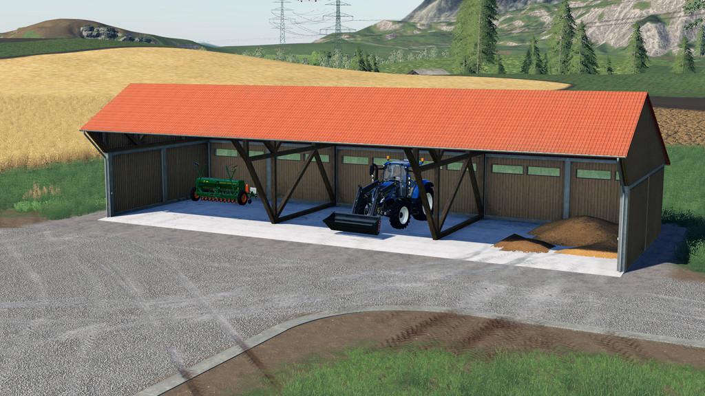 | MOD MACHINE SHELTER WITH LIGHTING V1.1.0.0 FOR FARMING SIMULATOR 2019 Shelter for machinery and equipment, with lighting. Dimensions: 24m * 10m * 6.5m Changelog 1.0.1.0: - adding mask Areas for Snow Credits: fqC Art. |