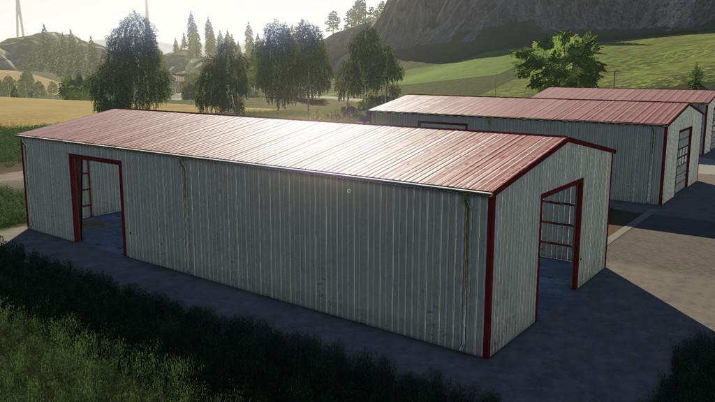 MOD METAL STORAGES V1.0.0.0 FOR FARMING SIMULATOR 2019 3 warehouses with dimensions for machines or cereals. In each warehouse there is a light inside and a sectional door with a button. 1) 12 x 20 meters: 2) 12 x 25 meters: 3) 12 x 30 meters: Credits: Karas |
