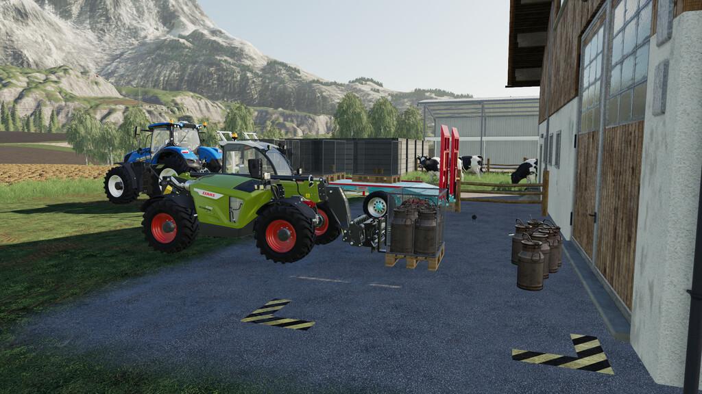 Mod MILK PALLET V1.0.0.0 for Farming Simulator 2019 This pallet can be used to transport milk from cow pastures or water for animal pastures. The pallet can load or unload milk or water only when it is attached to the pallet fork (except the double width ones) of CSZ Equipment Pack or attached (without using a fork for pallets) to any of these vehicles: compact loader, front loader, telescopic and wheel loader. It is also possible to transport the pallet, like the game's default pallets, but it is not possible to change the milk or water loaded. Attach and place the pallet in the loading or unloading area and the containers will be loaded or unloaded with milk or water according to the availability of the area. Credits: DD ModPassion |