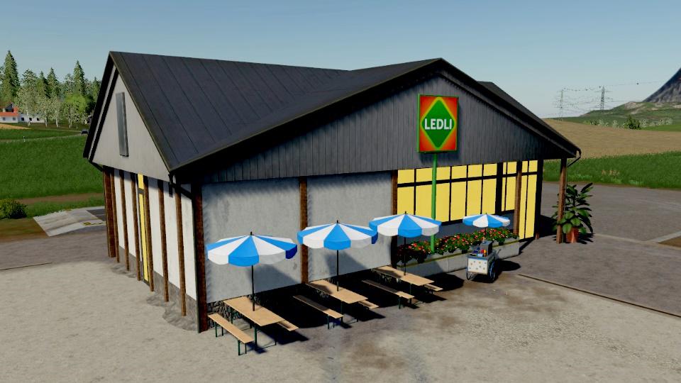 Mini supermarket with various functions Mini Supermarket for Farming Simulator 2019. You can use this object as a retail outlet, for passive income, or as a purely decorative object. There is also a freestanding universal retail outlet without any other buildings.