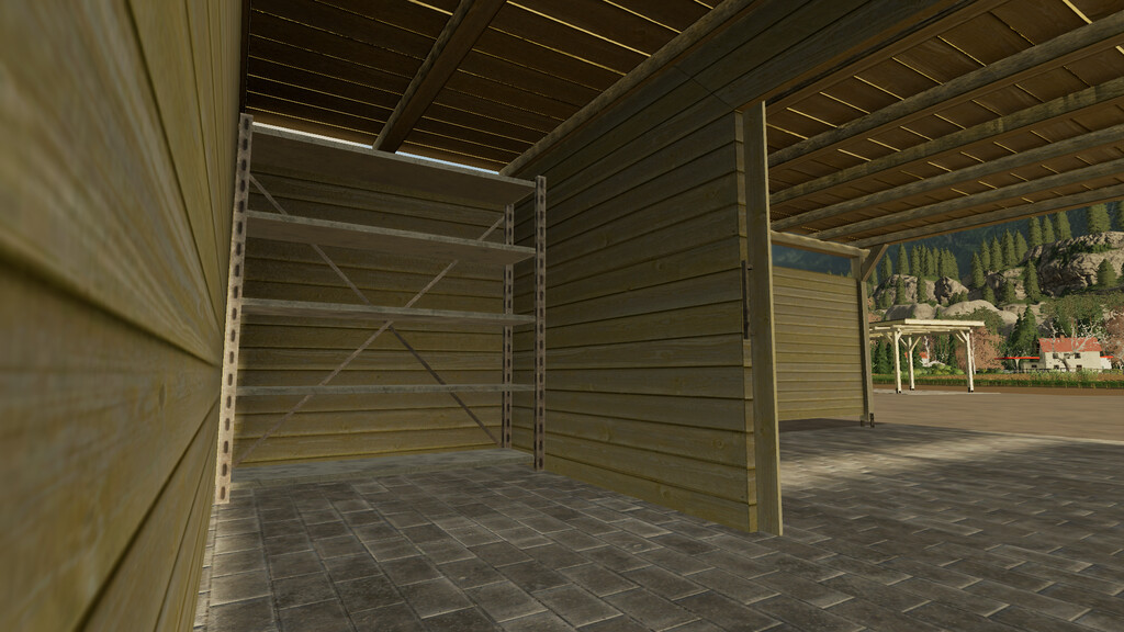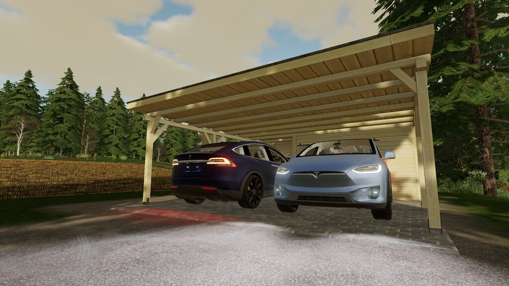 MOD Modern European Carports v1.0.0.0 for Farming Simulator 2019 This set includes 4 new wooden carports as they are built quite often in Western / Central Europe. 2 of them are designed for 2 cars, and the other two are for only one car. You can choose the option with or without side panels. For storing small items, each shed has a small shed with a sliding door and assorted furniture. Single canopy without walls: Single canopy with walls: Double canopy without walls: Double canopy with walls: Credits: TrianglesTrouble |