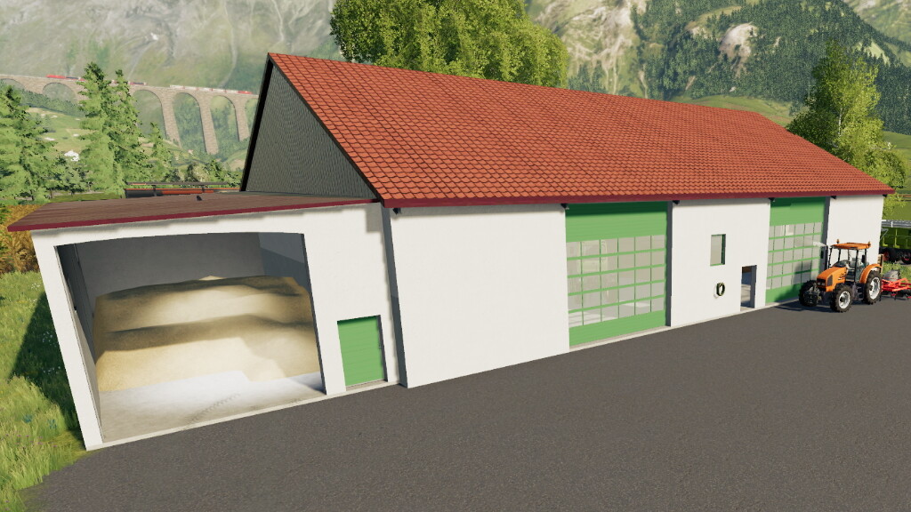 MODERN GARAGE WITH ANNEX V1.0.0.0 FOR FARMING SIMULATOR 2019 Another building was built in cooperation with the FarmingFive Group. The garage has a concrete base, which is ideal for tipping grain. Semi-transparent garage doors and multiple windows allow ample light into the hallway. - Purchase price: $ 52,000 without app. Credits: farmerfivetom |