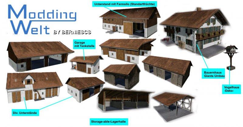 Collection / pack of installed objects on the map. Here are many different buildings with which you can organize your own farm on an empty map. Total - 41 buildings. Only the sheepfold is missing. The surface must be flat before installation. Changes v 1.3.1: Credits: BernieSCS |
