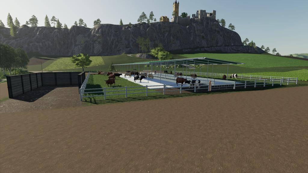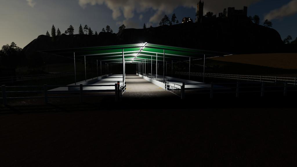 MOD MY COW PASTURE V1.0.0.0 FOR FARMING SIMULATOR 2019 Large pasture for cows, with animation of lights and doors. Made of galvanized construction and sheet roof Price: 260,000 €. Capacity: 400 cows. Dimensions: 70 mx 50 m