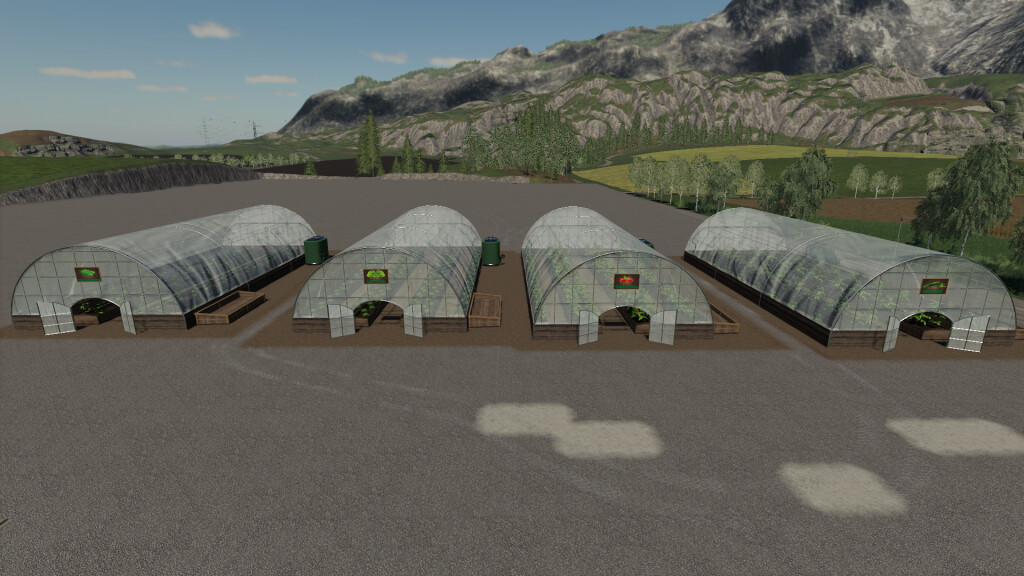 MOD Pack Greenhouses v1.0.0.0 for Farming Simulator 2019 In this package, you can have tomato, lettuce, pepper and cucumber greenhouses that generate your daily income. Price: 15000 € Credits: raulycristi1 [VSR Modding Sur] |