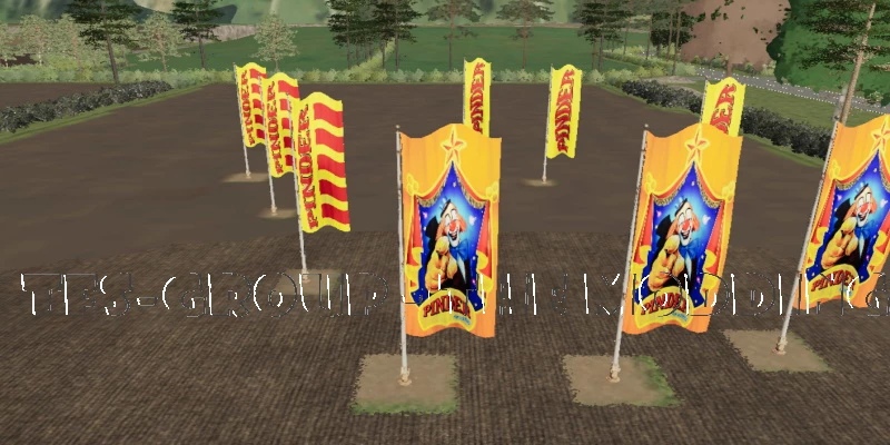 MOD PINDER FLAGS V2.0.0.0 FOR FARMING SIMULATOR 2019 These sets of flags with the picture CIRQUE PINDER that we offer you. There are 3 versions available. They can be placed. Credits: TFSGROUP |