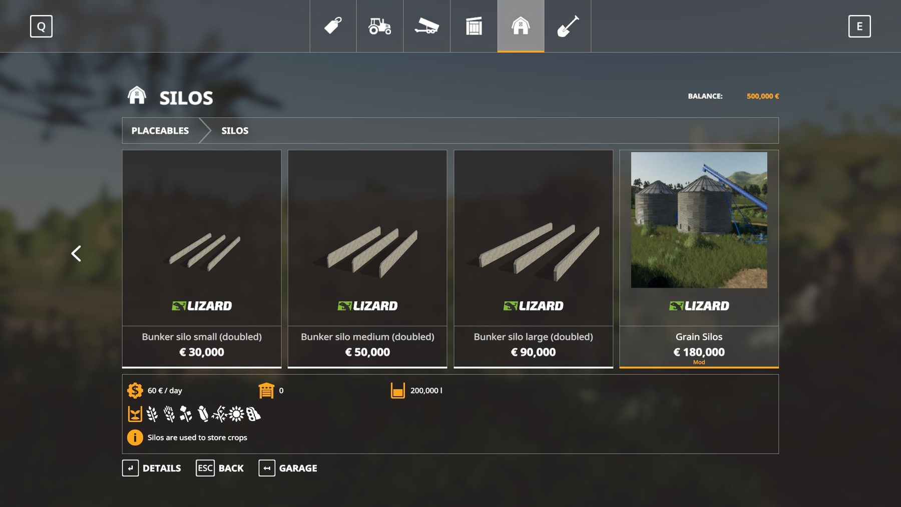 Here you can place a granary on the farm. Volume 250,000 liters. Price 180000 Service 60.