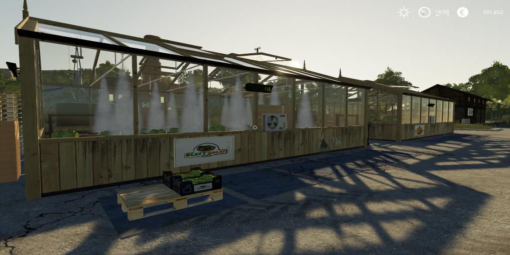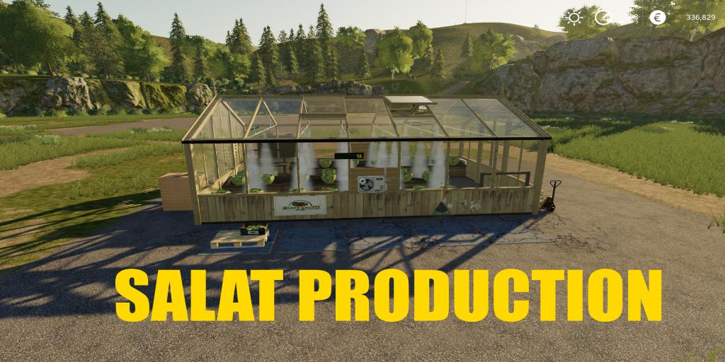 Мod SALAT PRODUCTION v1.0 for Farming Simulator 2019 You need manure, water, empty pallets and cardboard boxes for the production of Salad and the script "Global company in your mod folder" Credits: TheSnake |