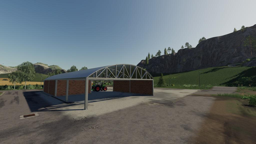 A simple placeable shed for vehicles and trailers. Price: 12500€ Daily upkeep : 5€ Size: 34m x 19m