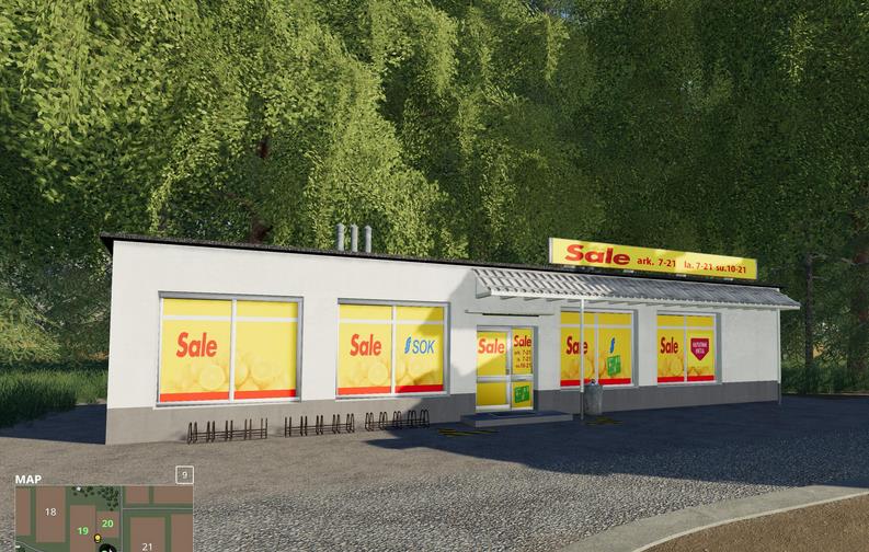 - Finnish regular store branded textures - You can sell here an egg, potatoes and sugar beets - when the store is on your land, you pay the rent