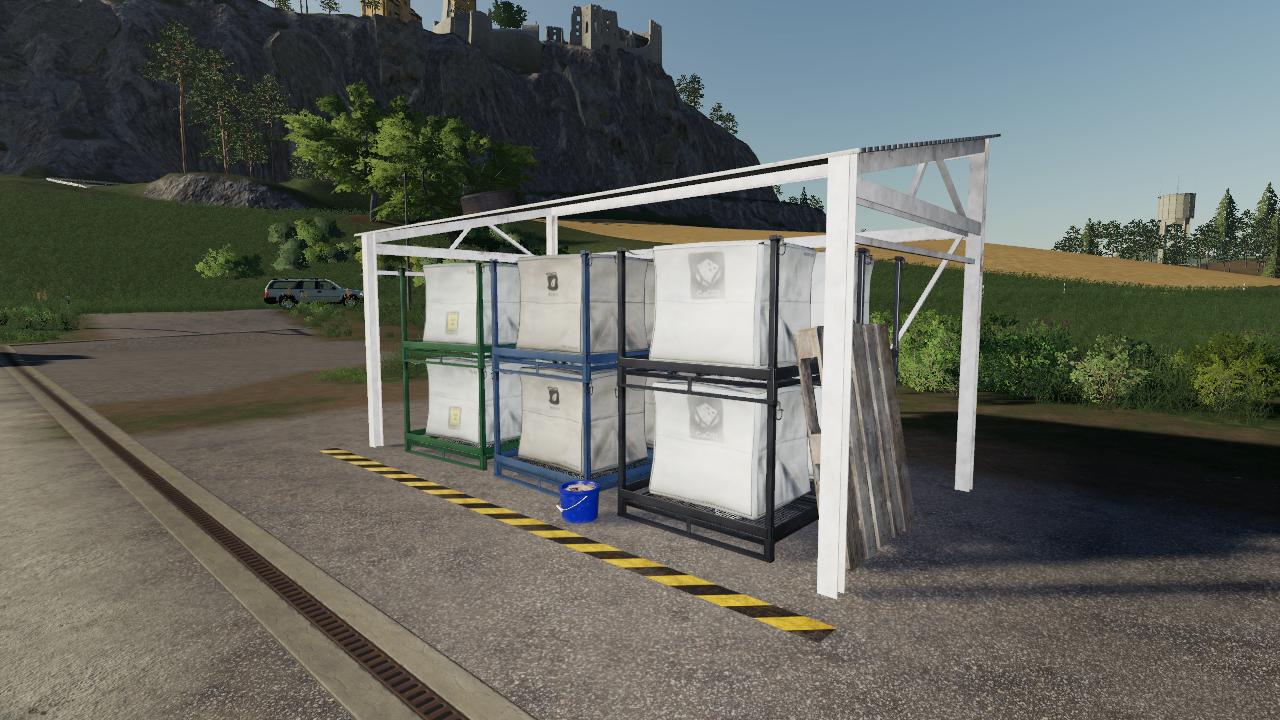Small supplies depot for seed, fertilizer, lime, liquid fertilizer and herbicide. Suitable for small farm and for individual who's kind of thought that big silos are a bit overkill for their farm. Credits: Gnork B'yoink |