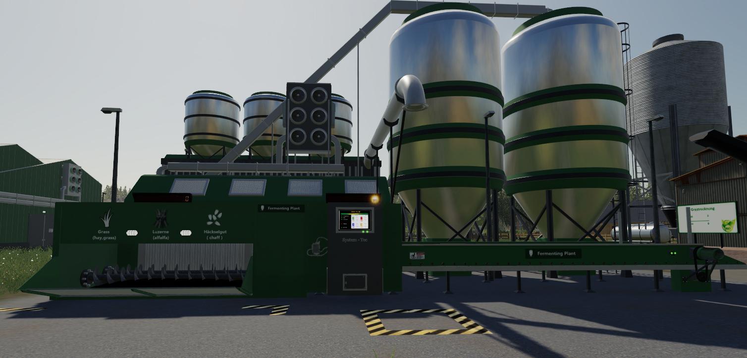 Mod SYSTEM-TEC FERMENTERSILOANLAGE V1.2.0.1 for Farming Simulator 2019 It produces silage from hay, alfalfa (should be supported by a map), grass. Before use, you need to enable by pressing the center console. Raw materials can be placed on a conveyor in the form of bales. Grass and shredded material in a silo. ChangeLog 1.2.0.1: If you want, you can also place the raw materials directly onto the conveyor in the form of a bale. The system has a size of 20x15 m (including the trigger!) Credits: fsm-team |