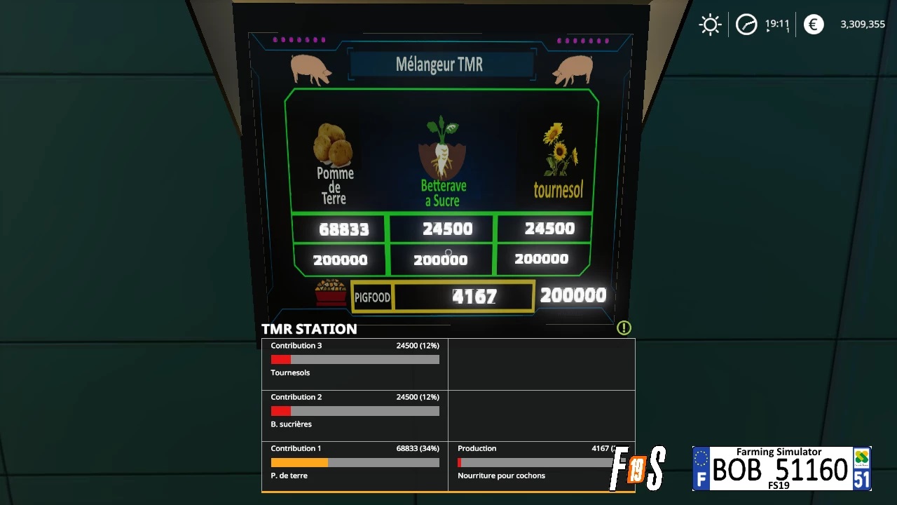 Mod TMRSTATION V1.0.0.0 for Farming Simulator 2019 Hello everyone, today I present you a new version of the TMR feed mixing cart. H in 2.5.0.0 allows you to prepare a mixture for your pigs....to do this, you will need potatoes / sugar beet / sunflower. Credits: BOB51160 / EDWARD`S MODDING |