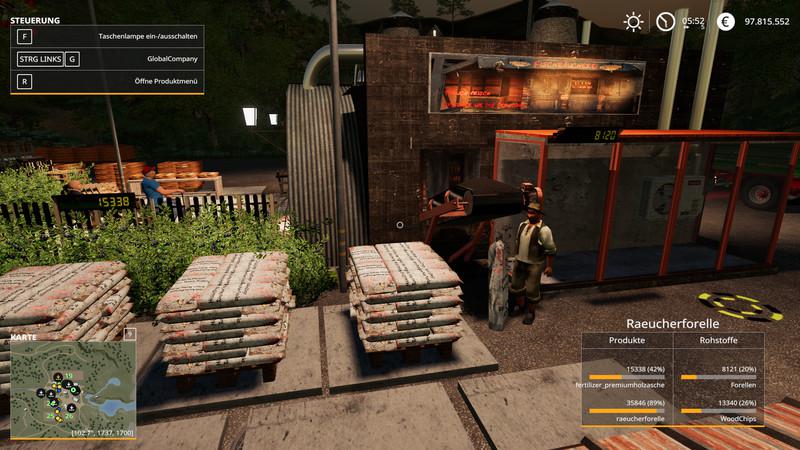 Kobold has too much wood ash, so he has grown a new production unit, and Seppel and his employee now stand on the conveyor belt for several hours every day, filling the highest quality wood ash in bags. Do not worry if the trout has disappeared, Seppel and the group has stopped. But it comes back when trout is delivered for smoking. You can then sell this horn wood ash or bring it to FBZ (FischBörsenZahlung). There is currently a separate category of leisure modders where you can find them. Enjoy your Kobold Kobe. |
