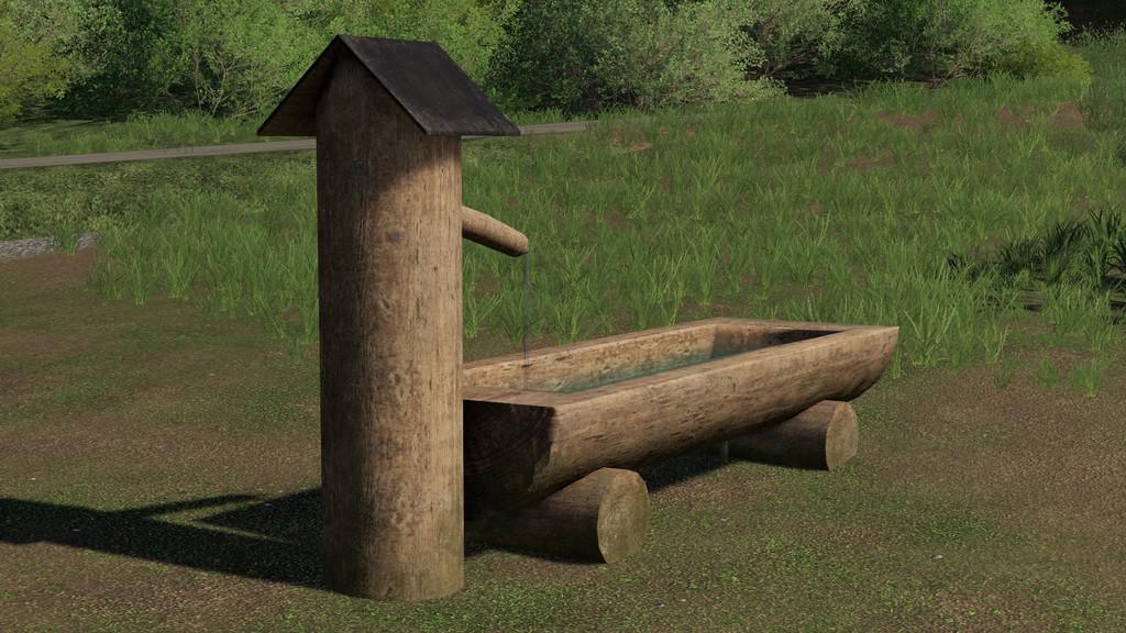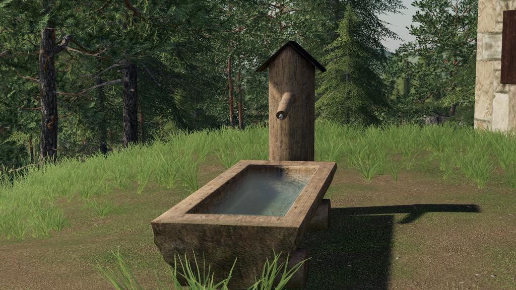 Price: 100 € A wooden fountain typical for many rural areas. Can be used as a placeable object to decorate your farm. It is also possible to fill up water at the fountain.