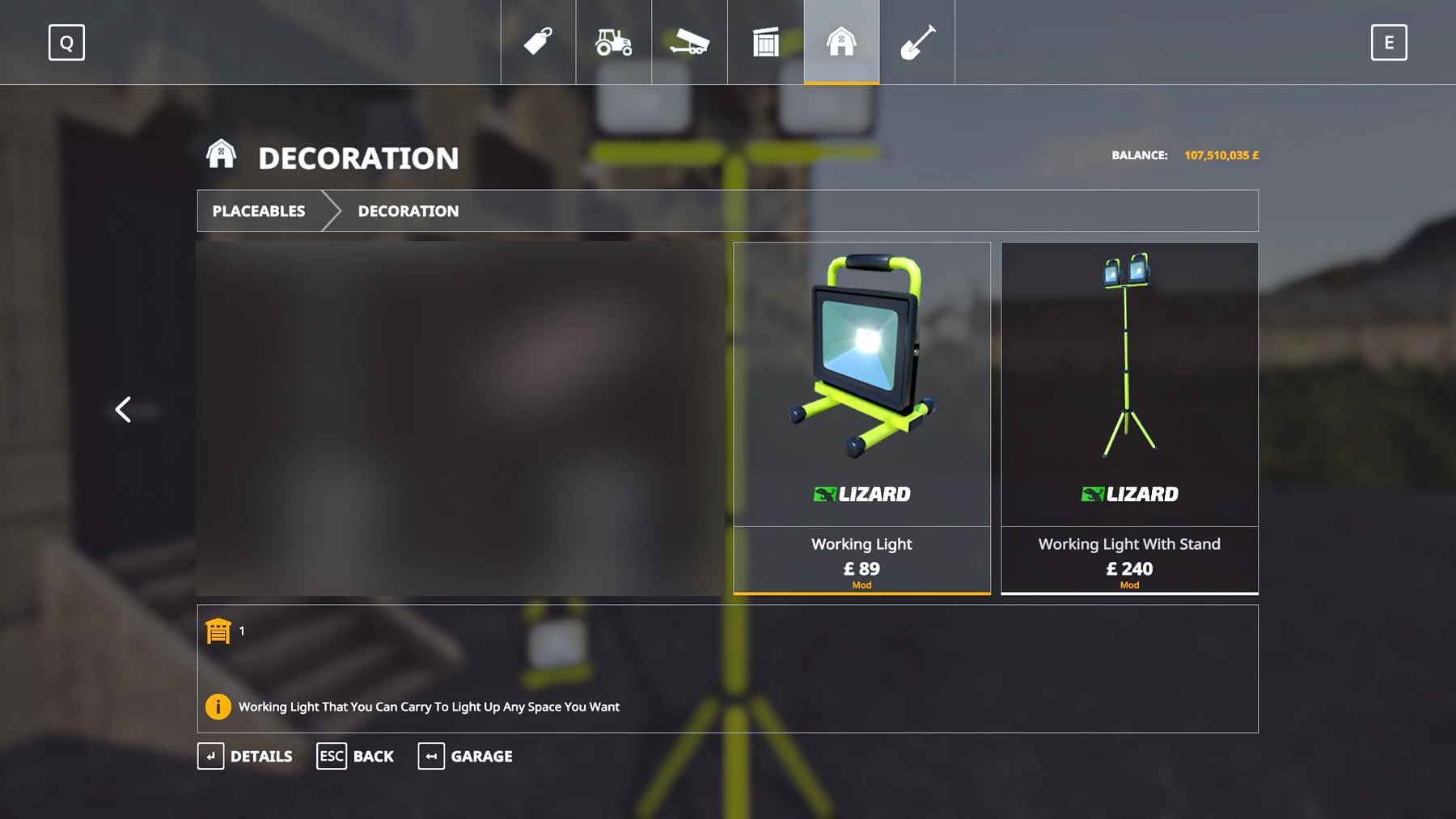 Mod Working Lights Pack v1.0.0.0 for Farming Simulator 2019 Working Lights That You Can Carry To Light Up Any Space You Want. Credits: My GameSteam |