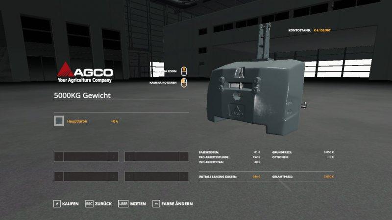 The counterweight Agco Weight 5000 KG is made for large tractors,