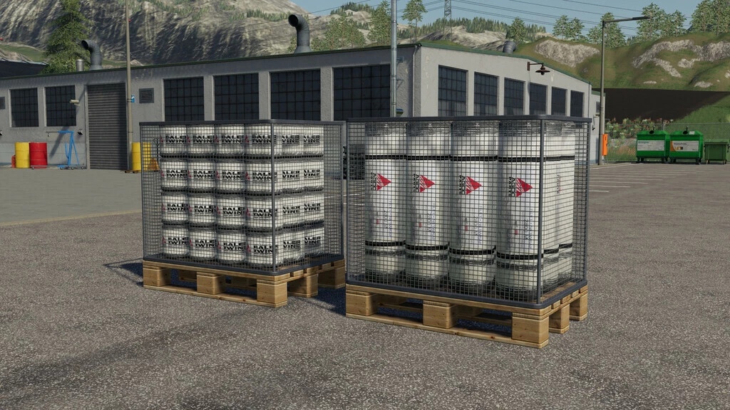 The square baler can be filled with twine using a pallet with 48 bales of twine. The pallet is present in the pallet category. Each piece is 1,400 meters long and each bale is wrapped 1 time by default.