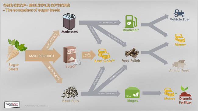 And if that wasn’t enough, the beet pulp can be turned into biogas at the BGA, and molasses can be used for pressing hay/straw pellets or fermented into biodiesel. And as “icing on the cake”, the bi-product of turning beet pulp into biogas is liquid organic fertilizer that you can use to improve the next harvest of “the white gold”.