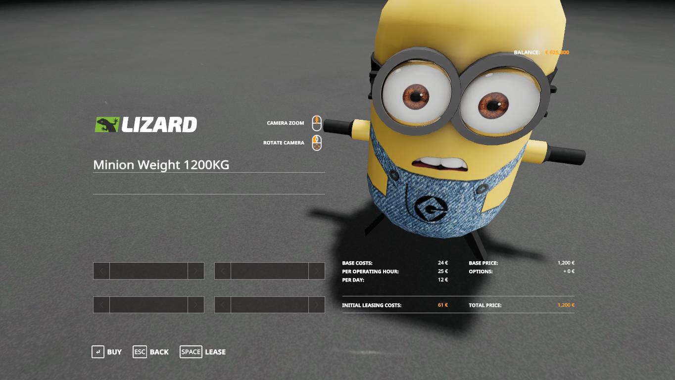 MOD Bob minion weight for Farming simulator 2019 - Price: 1200 € - Weight: 1200 kg Category: Tools > Weights