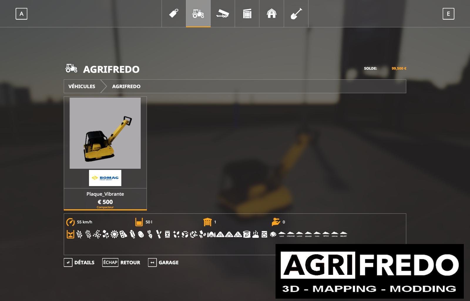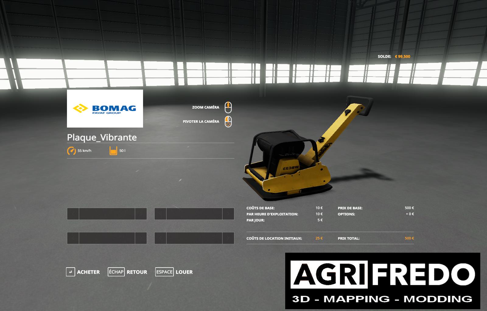Мod Compacteur v1.0.0.0 for Farming Simulator 2019 Name: vibrating plate Credits: AGRIFREDO |