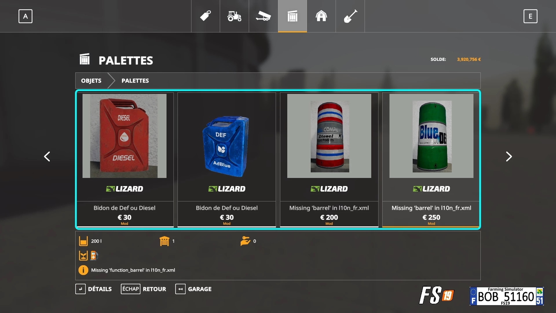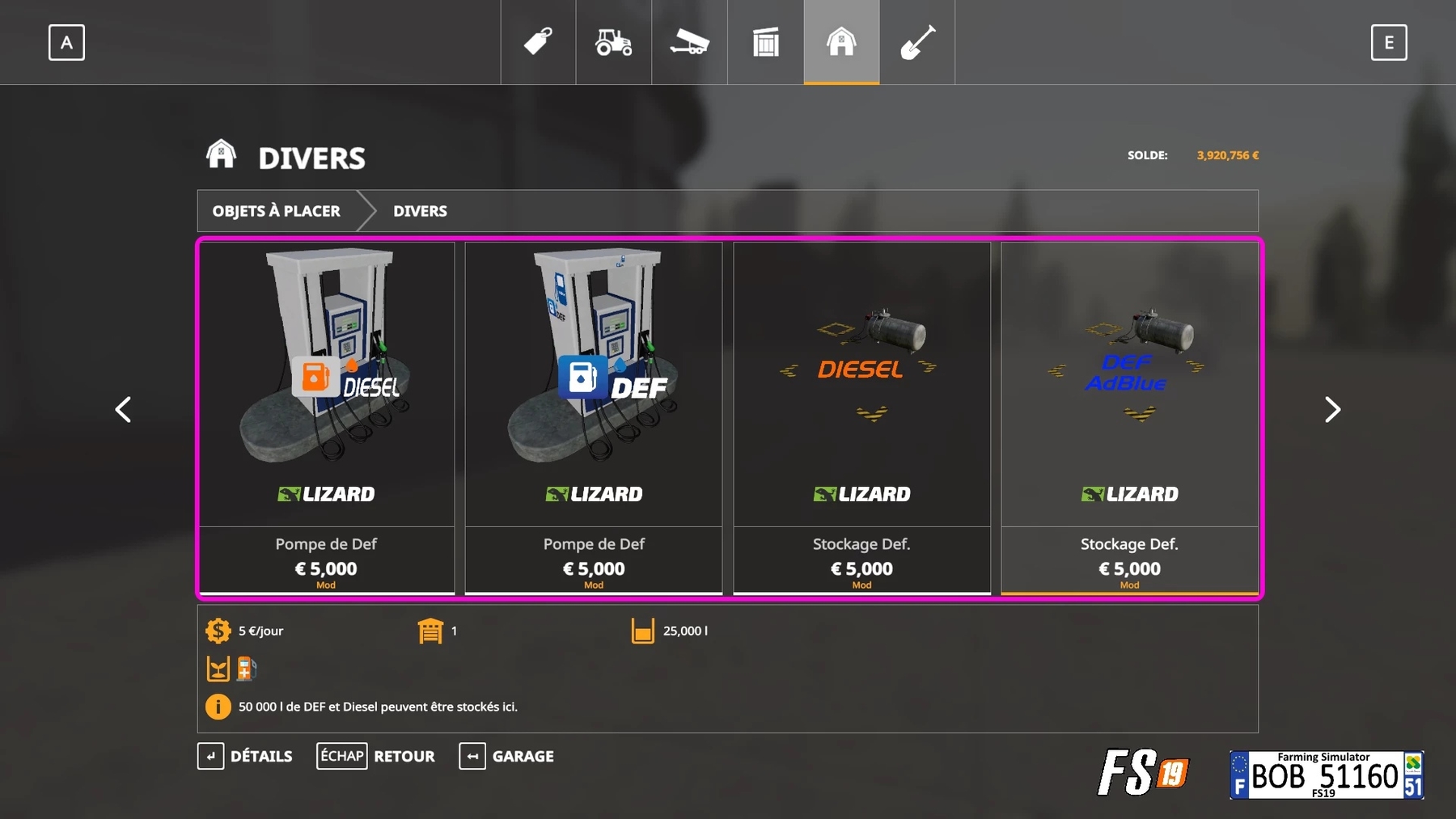 Mod DieselPack By BOB51160 for Farming Simulator 2019 FS 19 DieselPack By BOB51160 Pack, no need to unpack it. You will find 7 mods that you can place, 2 mods for tanks and 2 mods that you can carry and use.