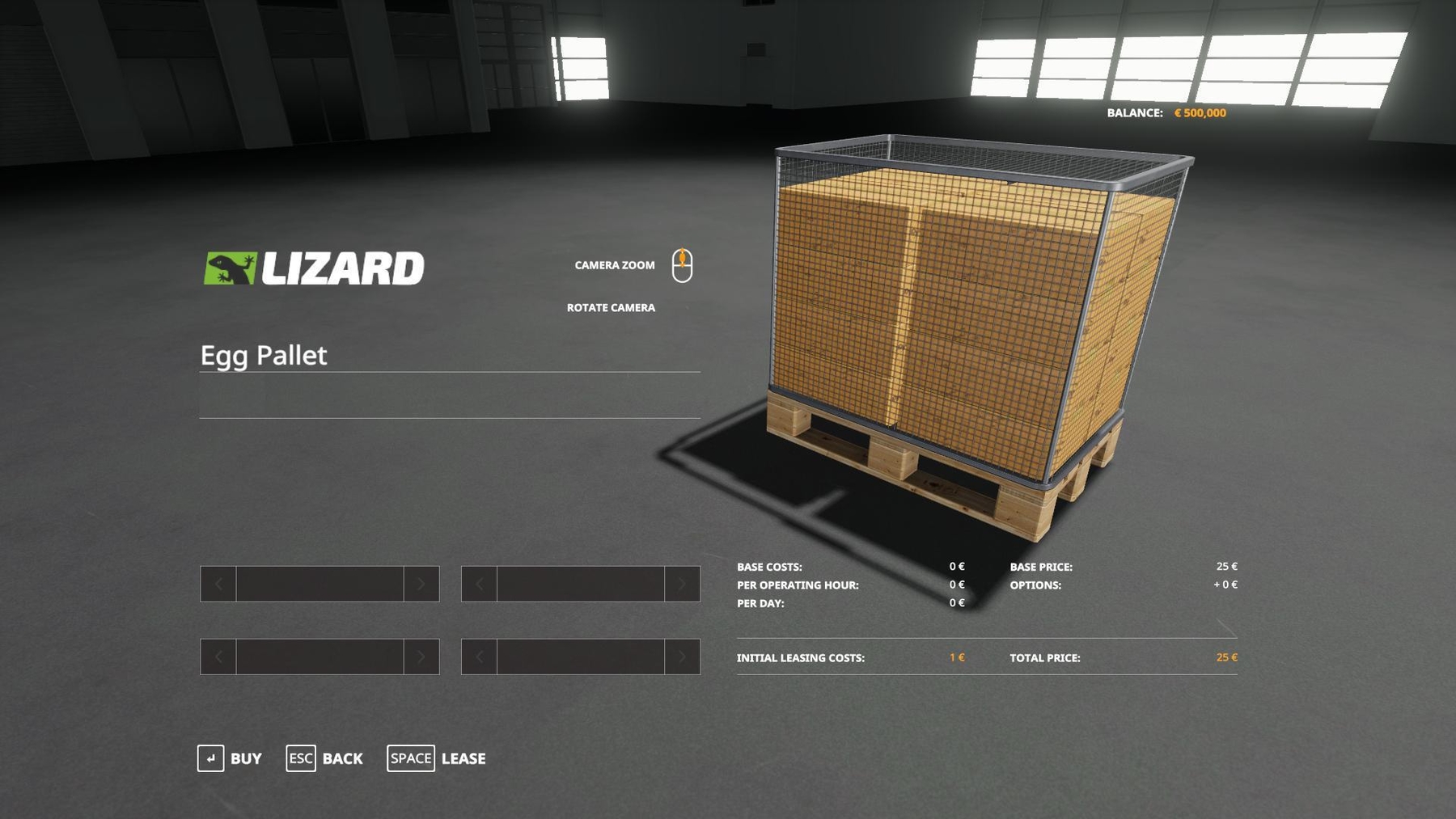 This egg pallet holds 14400 liters of eggs all you have to do is put the egg box near the pallet and it will load it up. Credits: adub modding |