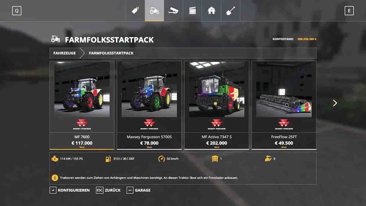 Mod FARMER FOLKS STARTER MODPACK V1.0.0.0 for Farming Simulator 2019 The following machines are included: Credits: flappflapps, Blaue Augen Modding |
