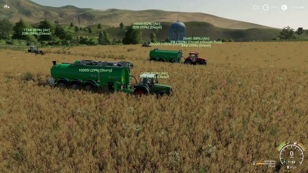 Mod FILLABLE VEHICLE INFO V1.0.0.0 for Farming Simulator 2019 Displays the type of cargo and filling level in nearby (up to 100m) 'fillable' vehicles. Credits: Ziuta |