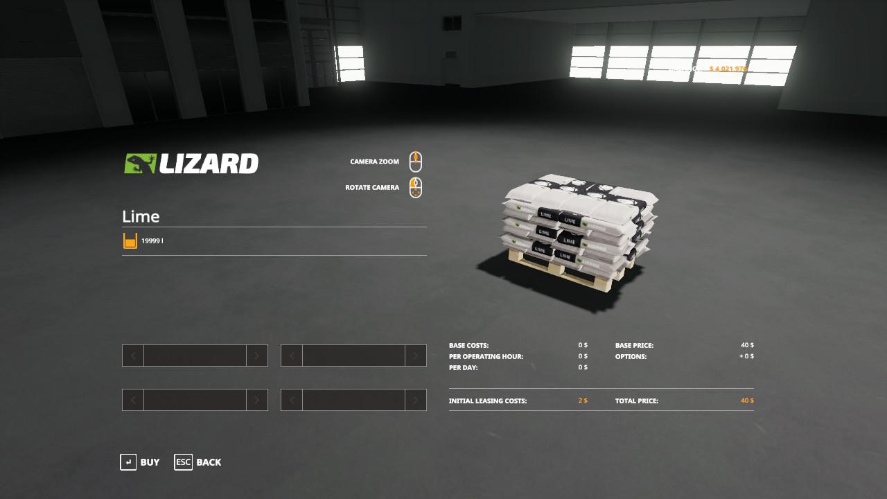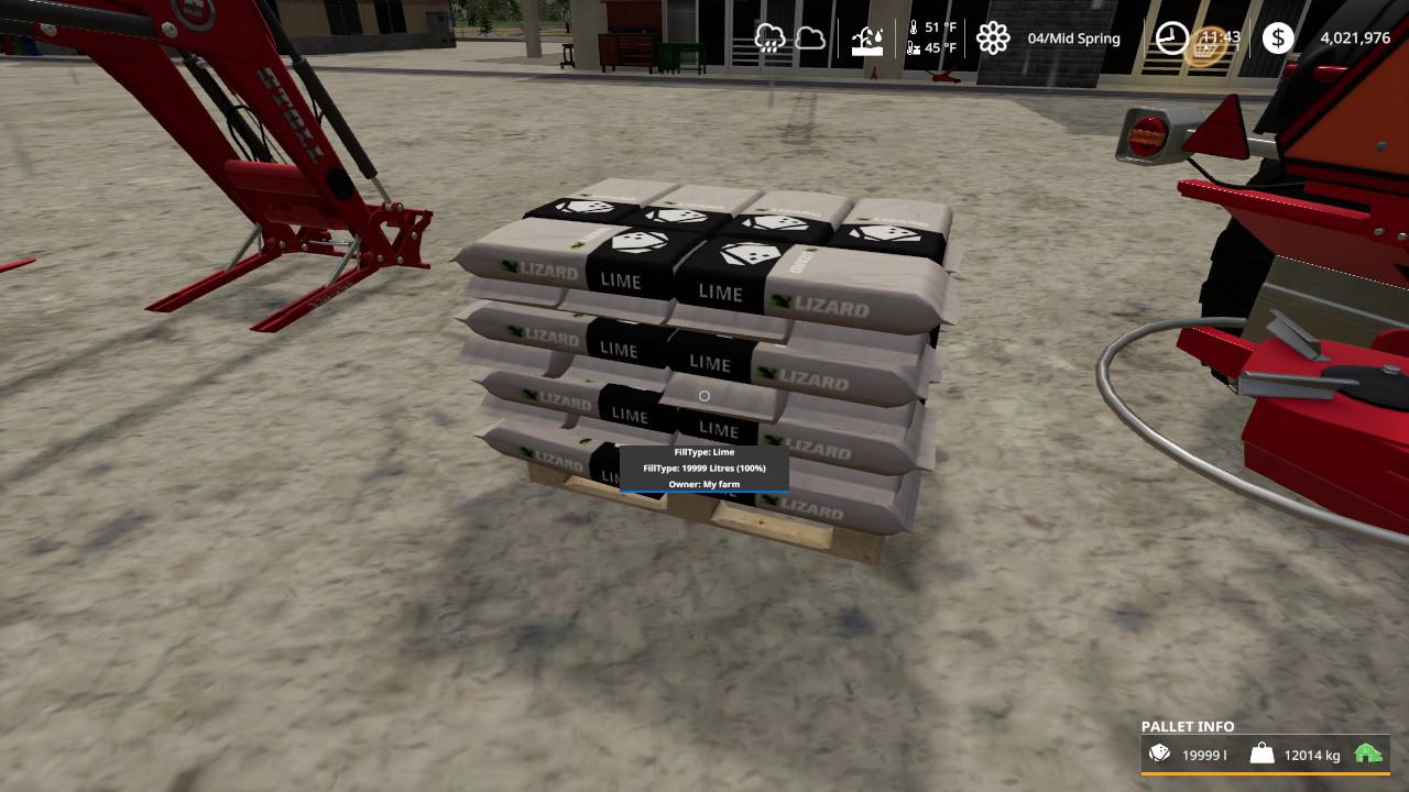 Mod LimePallet v1.0.0.0 for Farming Simulator 2019 The lime tray holds 19999 liters, price $ 40.