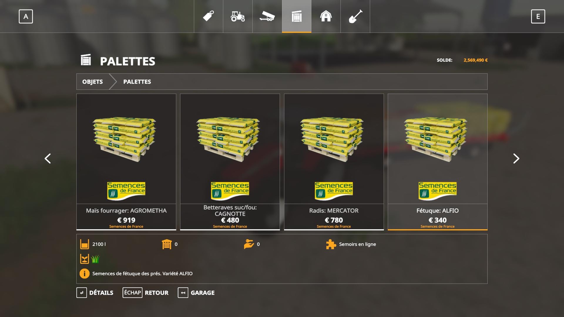 Mod Palette de semences v1.0.0.0 for Farming Simulator 2019 Pack de palettes de semences Credits: Bandit36FR |