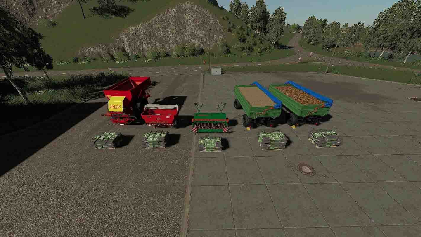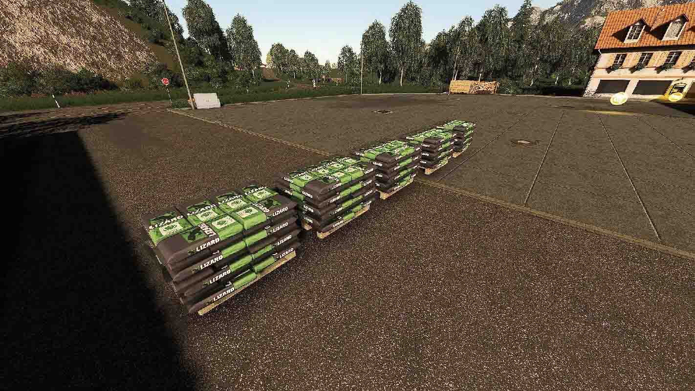 Mod Pallet Pack v1.0.0.0 for Farming Simulator 2019 Seeds, fertilizers, pig feed, horse feed and lime trays Pallet package - Horse feed, pig feed, lime, artificial fertilizers, seeds - Capacity: 2100 liters - Price: horse feed 1250 €, pig feed 1350 €, lime 1450 €. Artificial fertilization € 1550, seeds € 1750