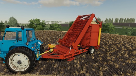 The picker PK-1,6 picks up hay from the roll, forms a cylindrical pile and lays it on the surface of the field. In the game, it performs the standard functions of a forage pick-up trailer. The main nodes of the pick-up machine are: the picker, the conveyor and the picker. All components of the machine are mounted on a welded frame. In the working position, the picker-kopnitel rests on the running wheels and on the tractor trailer earring. - Price: 12000 € Credits: M.Artemov |
