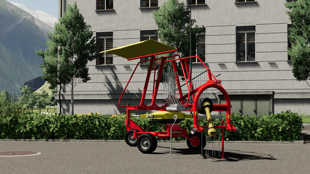 The Pöttinger EUROTOP 340 is a rear rake with a working width of 3,40 meters. It is designed for use in alpine regions. With only 400 kg it is a real lightweight for alpine agriculture.