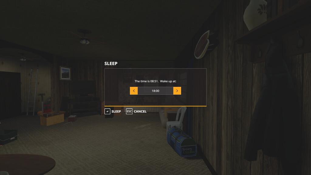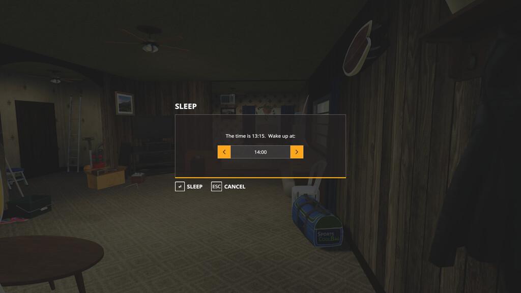 Mod SLEEP ANYTIME V1.0.0.0 for Farming Simulator 2019 This mod removes the restrictions for sleeping, so you can sleep whenever you like. If you have ever worked all through the night and needed to rest in the day, or sometimes want to have a quick nap after lunch, then this is the mod for you! It can also be used as a way to fast forwarad time on a multiplayer server if the admin is not available. Credits: loki_79 |